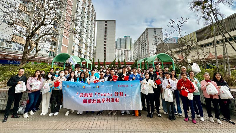 2月3日下午,集團組織百余名學(xué)員及友師參加香港特區(qū)政府第二期“共創(chuàng)明‘Teen’計劃”開展社區(qū)探訪活動,在集團區(qū)議員符碧珍服務(wù)的觀塘北社區(qū)探訪長者和殘弱人士,幫助其清潔家庭衛(wèi)生并派發(fā)了福袋。