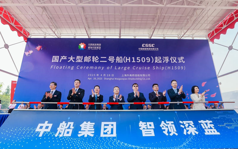 4月28日,第二艘國產(chǎn)大型郵輪“愛達·花城號”在上海外高橋造船有限公司順利實現(xiàn)塢內(nèi)起浮。工信部裝備工業(yè)二司司長徐春榮、文旅部產(chǎn)業(yè)發(fā)展司副司長馬力,中國船舶集團總經(jīng)理王國強、副總經(jīng)理胡賢甫,集團總經(jīng)理范云軍、董事兼華夏國際郵輪董事長石善博,上海市經(jīng)濟和信息化委員會副主任蒲亞鵬、浦東新區(qū)副區(qū)長李慧等出席儀式。