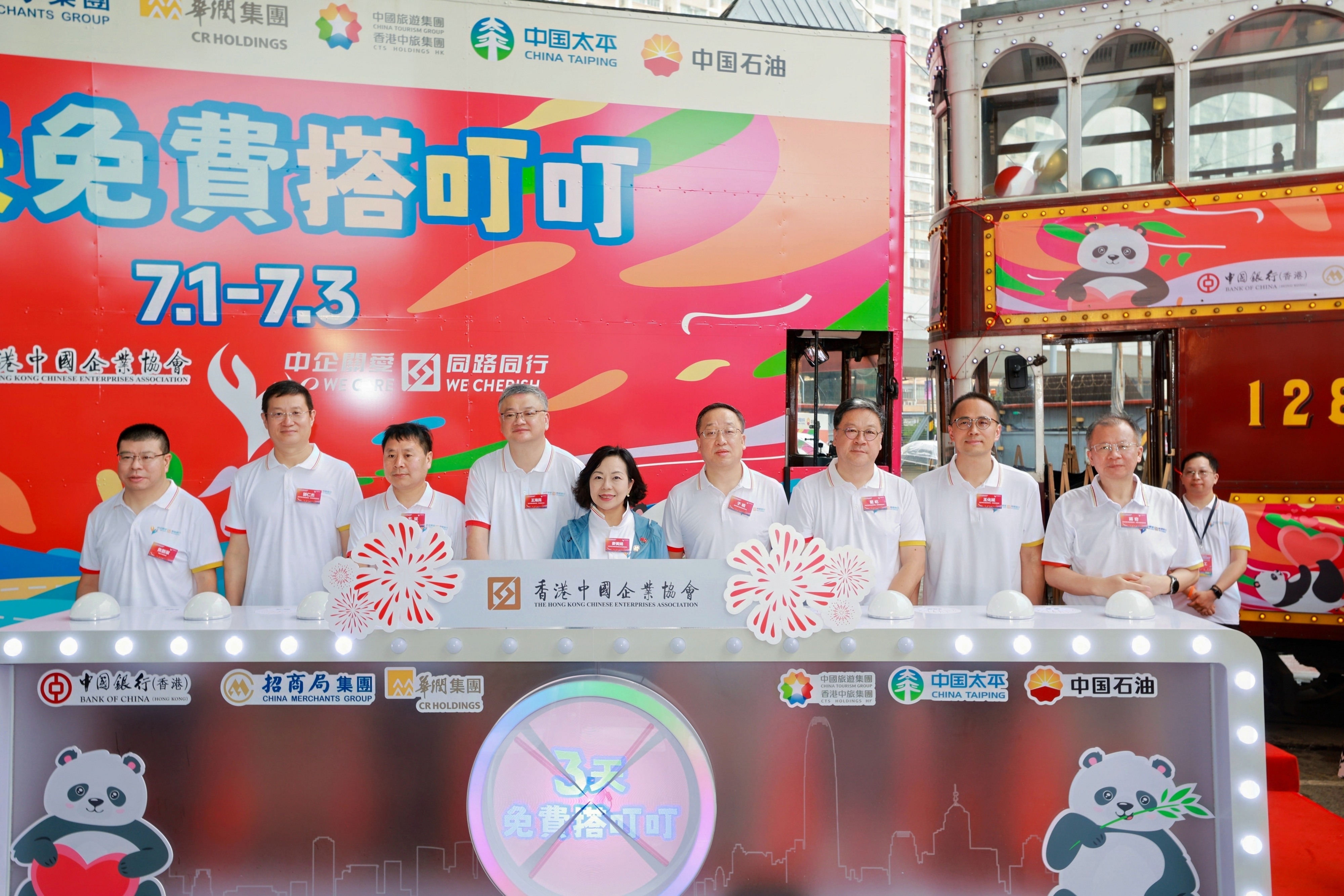7月1日,香港中國企業(yè)協(xié)會舉辦“慶回歸28周年暨中企服務(wù)進(jìn)社區(qū)活動”啟動禮,特區(qū)政府民政及青年事務(wù)局局長麥美娟,香港中國企業(yè)協(xié)會會長、集團(tuán)董事長王海民受邀出席啟動禮并致辭。中聯(lián)辦港島工作部副部長尤斌等嘉賓出席活動。王海民在致辭中宣布,中企協(xié)會攜手會員企業(yè)與香港電車合作,于7月1日開始一連3天邀請全港市民免費(fèi)搭乘香港電車,旨在回饋香港社會、服務(wù)廣大市民。